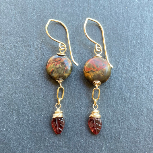 Red Creek Jasper, Mozambique Garnet & Gold Earrings