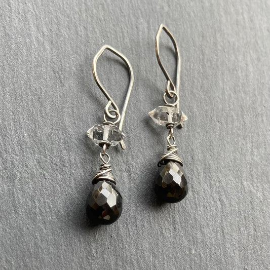 Black Onyx, Herkimer Diamond & Sterling Silver Earrings