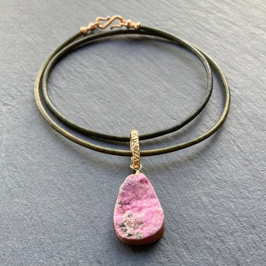 Cobalto Calcite & Bronze Leather Choker