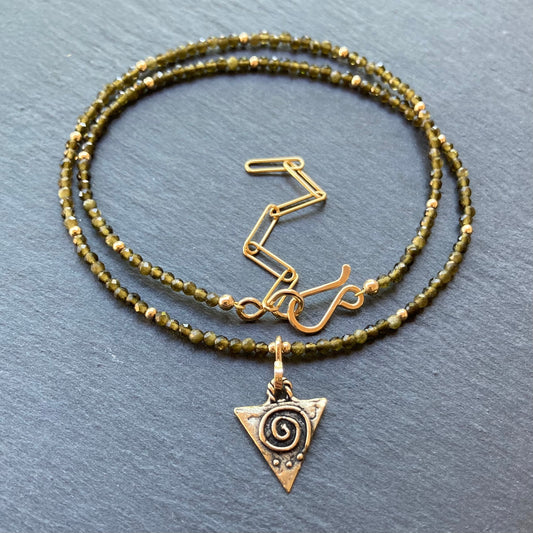 Dalmatian Jasper & Bronze Goddess Pendant Choker
