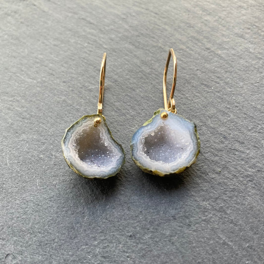 White Druzy Tabasco Geode & Gold Earrings