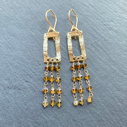Petro Tourmaline, Gold & Bronze Long Fringe Hoops