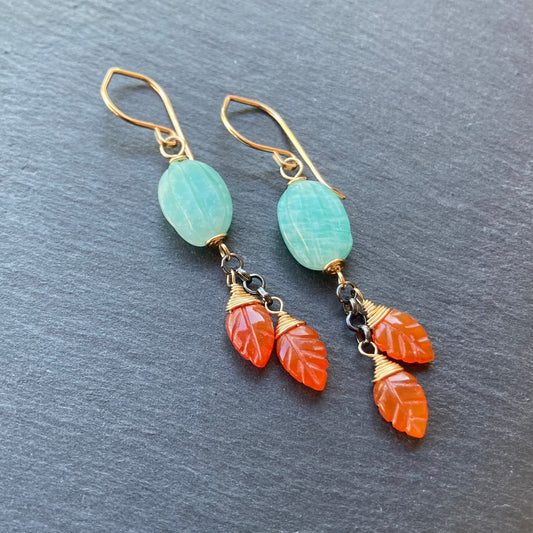 Dalmatian Jasper, Fossil Jasper, Gold & Bronze Goddess Earrings