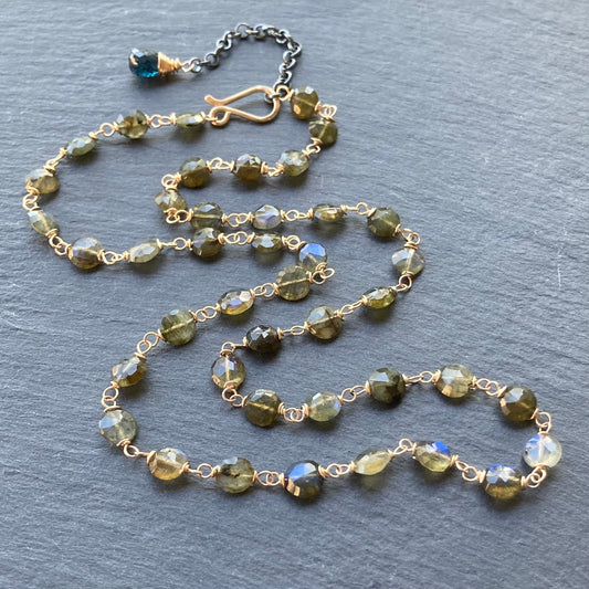 Rainbow Moonstone & Sterling Silver Moon Pendant Choker