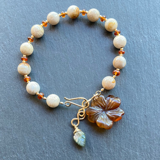 Fossil Coral, Carnelian & Gold Autumn Bloom Bracelet