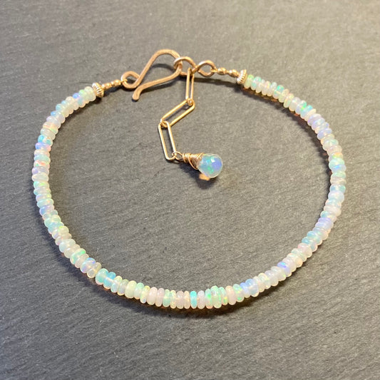 Snowflake Obsidian, Dendritic Opal & Sterling Silver Winged Goddess Bracelet