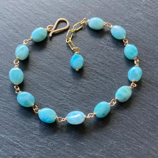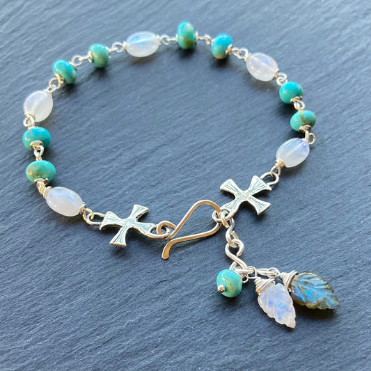 Kingman Turquoise, Rainbow Moonstone & Sterling Silver Pattée Cross Charm Bracelet