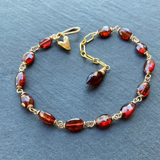 Mozambique Garnet, Gold & Bronze Heart Charm Bracelet