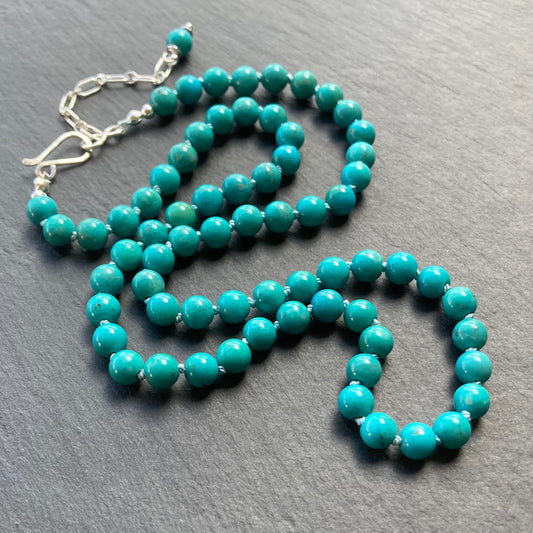 Genuine Turquoise Hand Knotted Silk Necklace