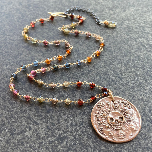 Tundra Sapphire & Mixed Metal Sugar Skull Necklace
