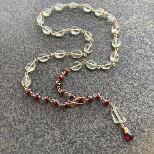 Prasiolite, Rhodolite & Gold Convertible Lariat Necklace