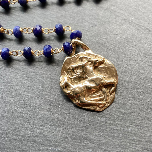 Sodalite, Gold & Bronze Horse Coin Necklace