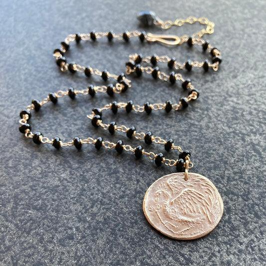 Black Onyx, Gold & Bronze Phoenix Rising Coin Necklace