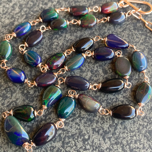 Ethiopian Black Opal & Rose Gold Necklace