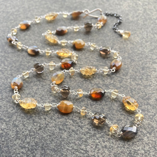 Montana Agate, Citrine, Smoky Quartz & Sterling Silver Necklace