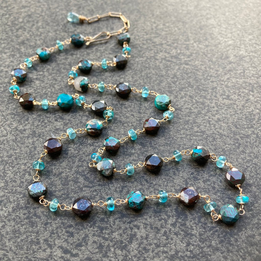 Shattuckite, Sky Blue Apatite & Gold Necklace