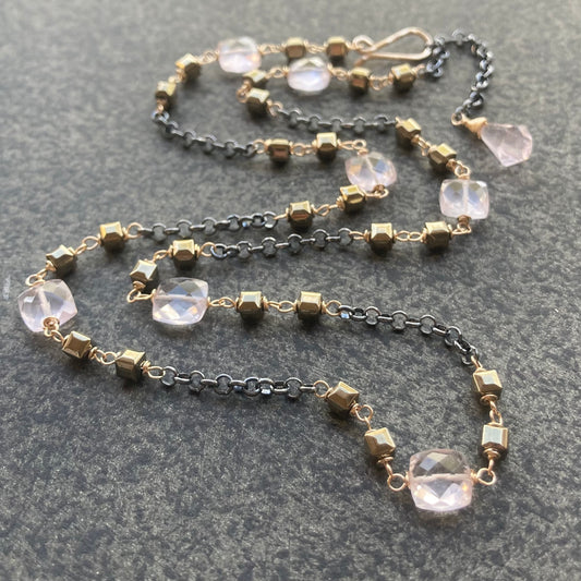 Rose Quartz, Pyrite & Mixed Metal Convertible Necklace