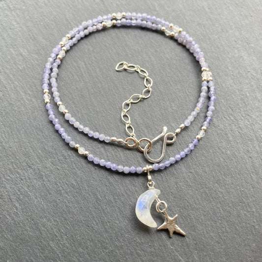 Tanzanite, Rainbow Moonstone & Sterling Silver Moonbeam Choker