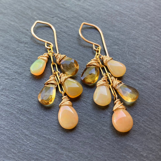 Ethiopian Golden Opal, Citrine & Gold Cascade Earrings
