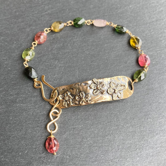 Multicolor Tourmaline, Gold & Bronze Flower Link Bracelet