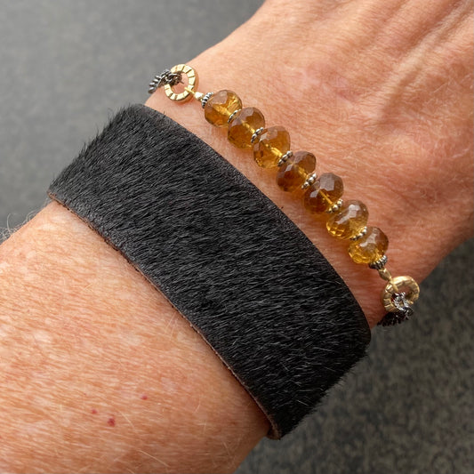 Aquamarine, Hessonite, Rhodolite & 14k Gold Bracelet