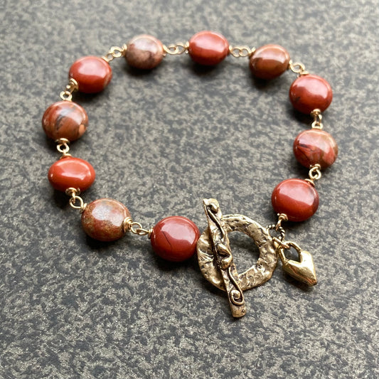 Apple Jasper, Gold & Bronze Heart Toggle Bracelet