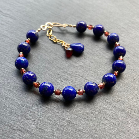Lapis Lazuli, Malaya Garnet & Gold Bracelet