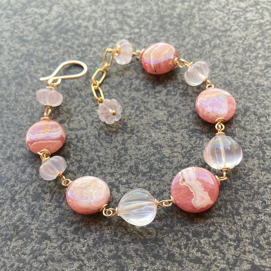 Rhodochrosite, Rose Quartz & Gold Sunrise Bracelet