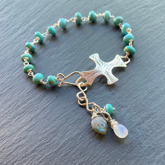 Kingman Turquoise & Sterling Silver Cross Pattée Charm Bracelet
