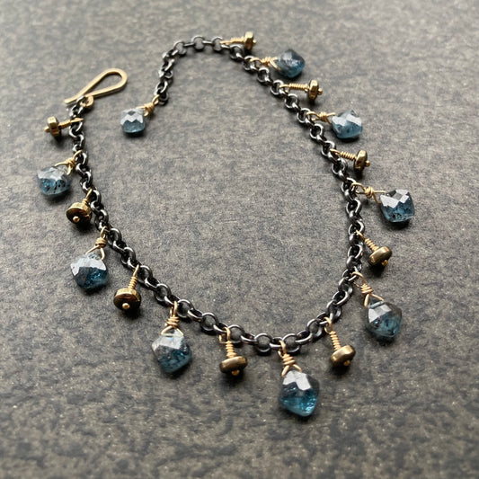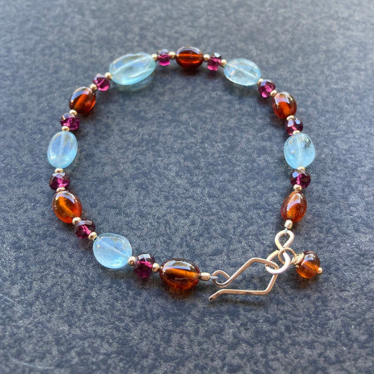 Aquamarine, Hessonite, Rhodolite & 14k Gold Bracelet