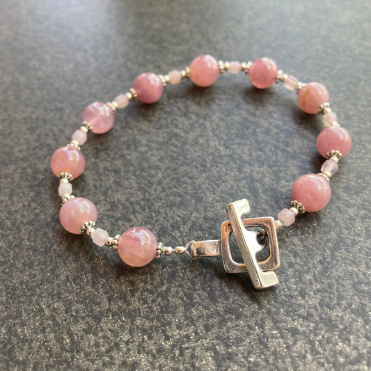 Madagascar Rose Quartz & Sterling Silver Square Toggle Bracelet