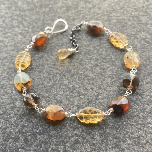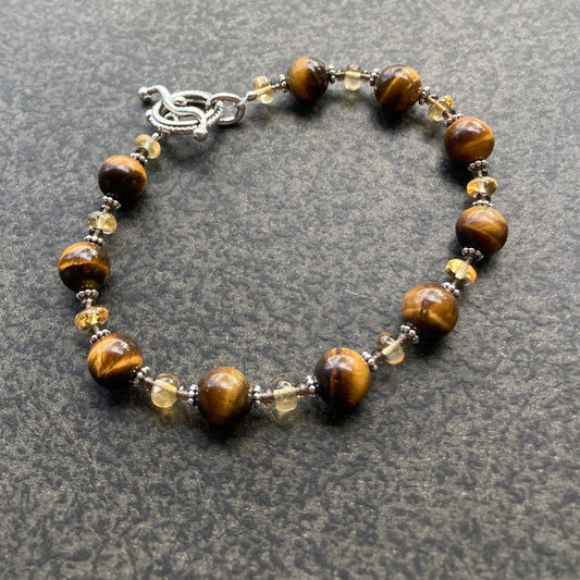 Golden Tiger Eye, Citrine & Sterling Silver Bracelet