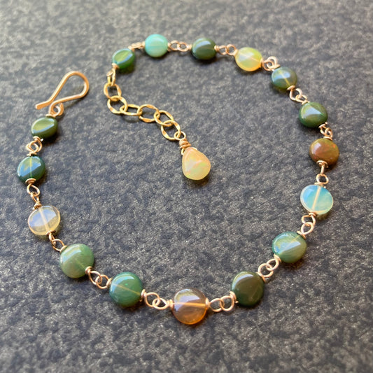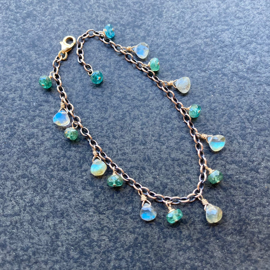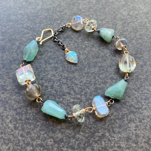 Green Kyanite, Labradorite & Mixed Metal Charm Bracelet