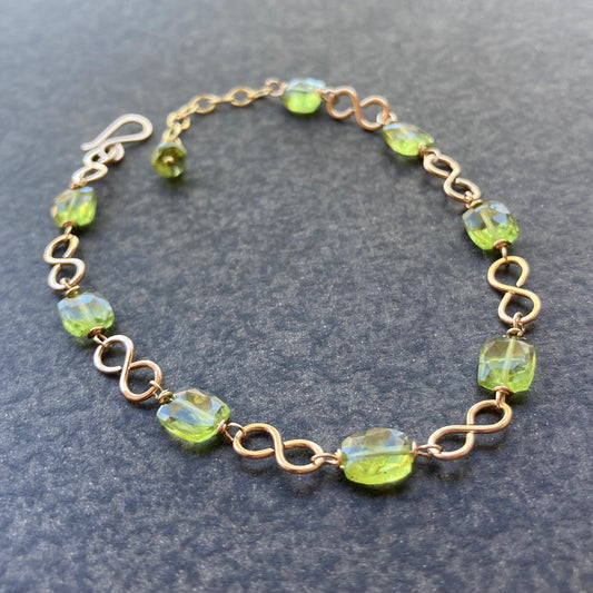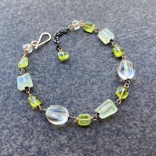 Peridot, Prasiolite, Prehnite & Mixed Metal Bracelet