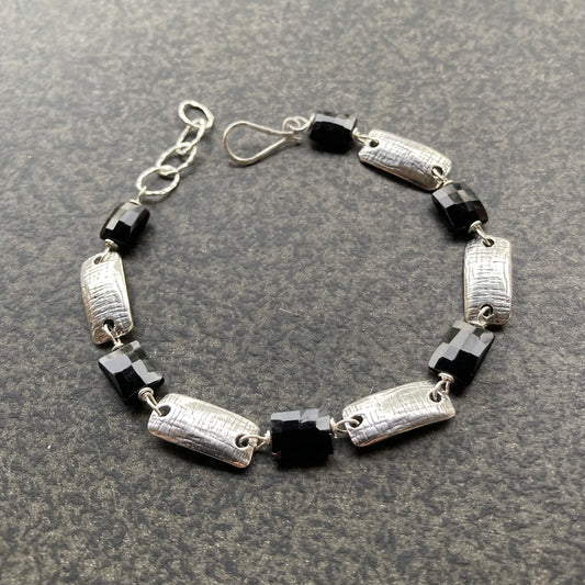 Black Spinel & Sterling Silver Artisan Link Bracelet