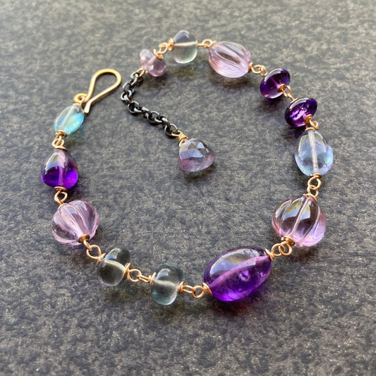 Amethyst, Fluorite & Mixed Metal Bracelet