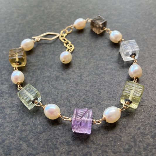 Multi Gemstone, Natural Pearl & Mixed Metal Bracelet