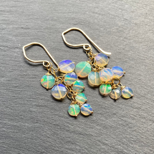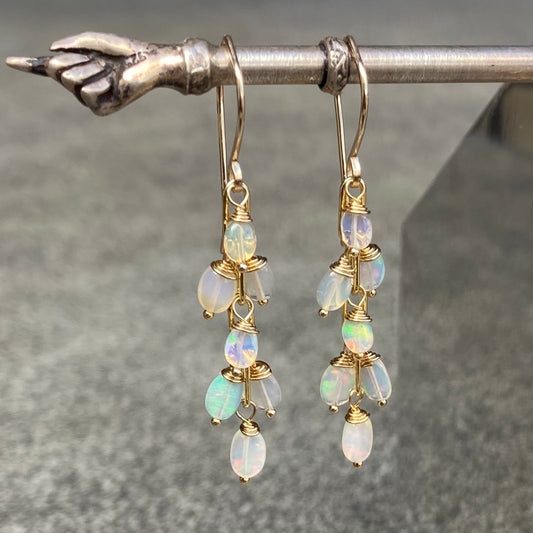 Ethiopian Opal & Gold Bubble Cascade Earrings