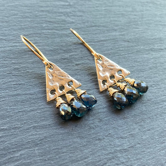 Golden Rutilated Quartz, Iolite & Mixed Metal Autumn Sky Cascade Earrings