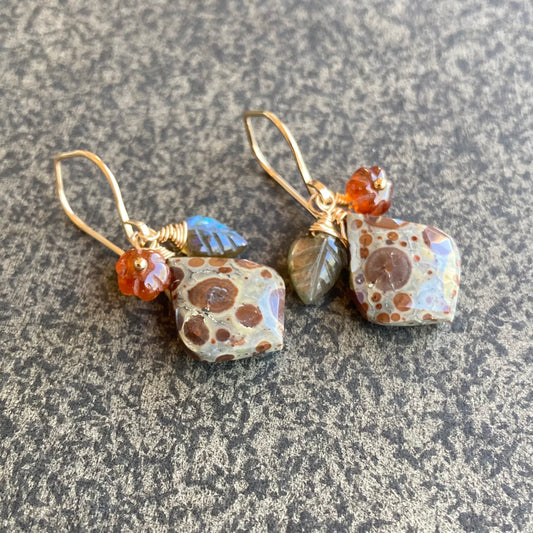 Asteroid Jasper, Hessonite, Labradorite & Gold Garden Charm Earrings