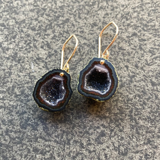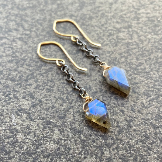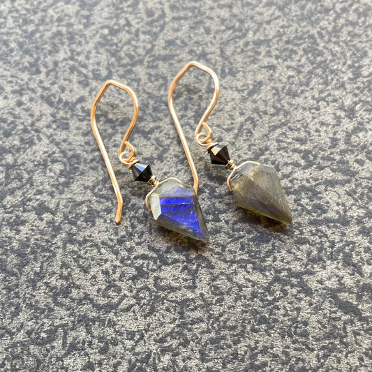 Labradorite, Black Spinel & Gold Arrowhead Earrings