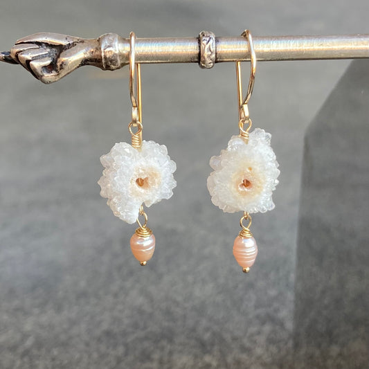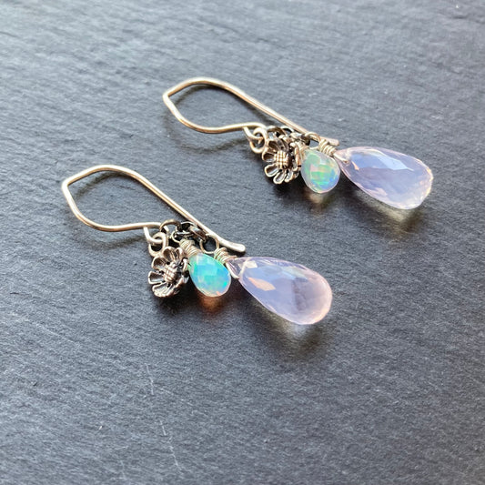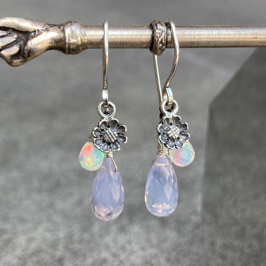 Scorolite, Ethiopian Opal & Sterling Silver Cherry Blossom Earrings