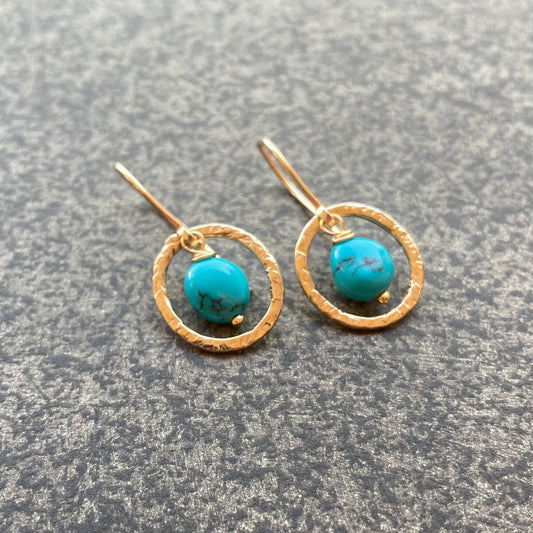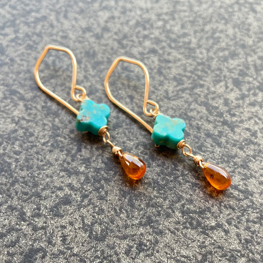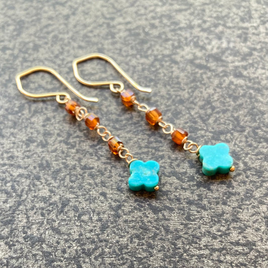 Turquoise, Hessonite & Gold Long Drop Earrings