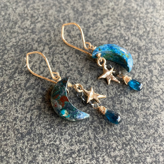 Chrysocolla, Neon Blue Kyanite & Mixed Metal Starry Night Cascade Earrings