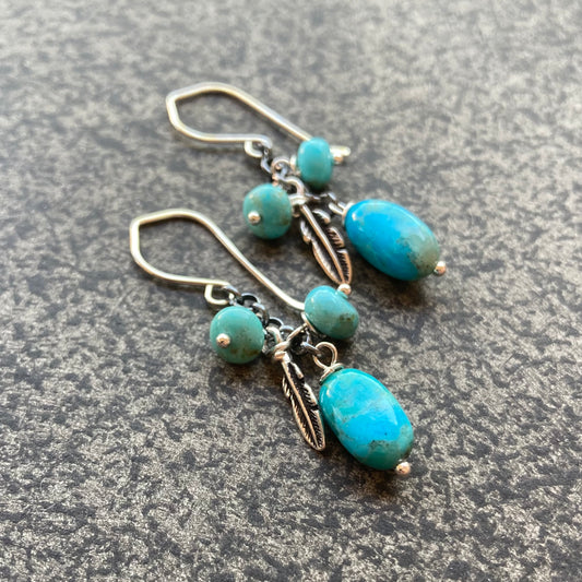 Kingman Turquoise & Sterling Silver Feather Cascade Earrings