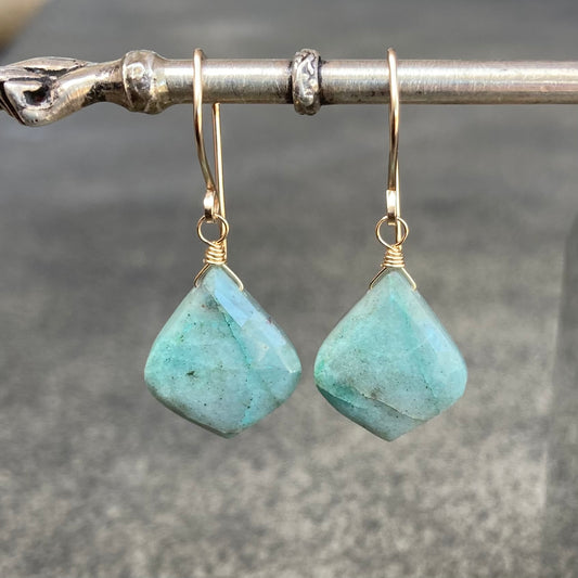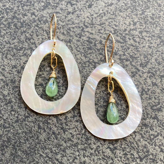 Vintage Mother of Pearl, Green Kyanite & Gold Hoops
