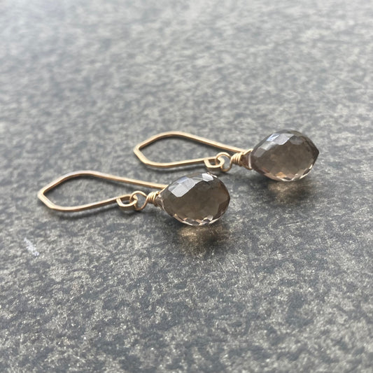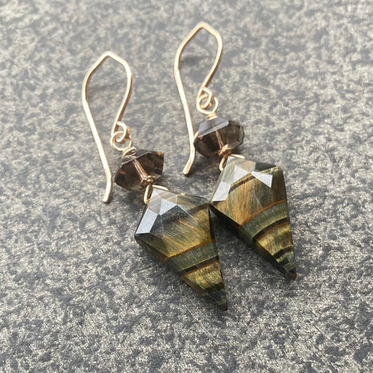Black Tiger Eye, Smoky Quartz & Gold Arrowhead Earrings