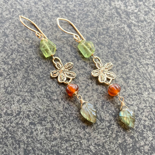 Multi Gemstone, Gold & Bronze Beatrix Long Drop Earrings
