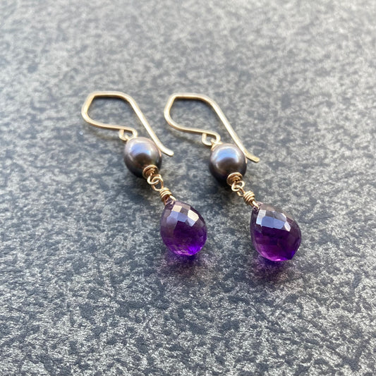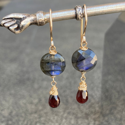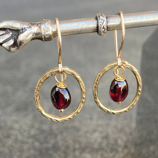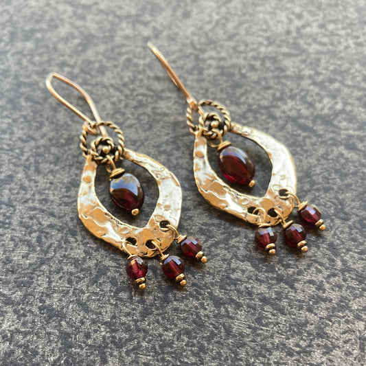 Rhodolite Garnet, Gold & Bronze Artisan Fringe Hoops