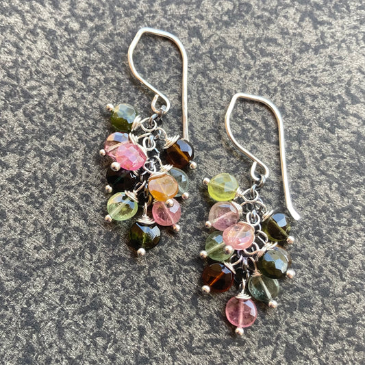 Multicolor Tourmaline & Sterling Silver Cascade Earrings